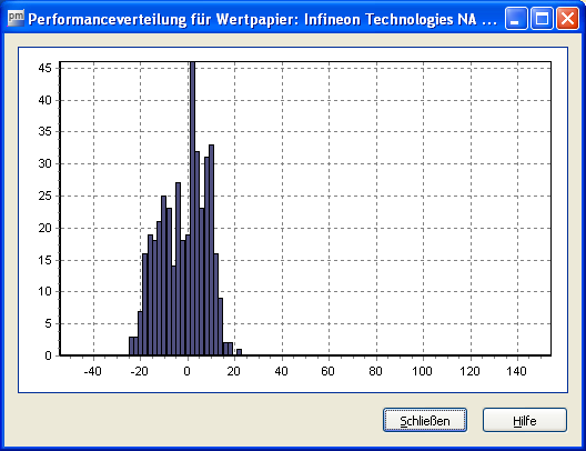 Durch Doppelklick auf eine Tabellenzeile erhalten Sie die Häufigkeitsverteilung für alle Performancewerte des betreffenden Wertpapiers in grafischer Form.