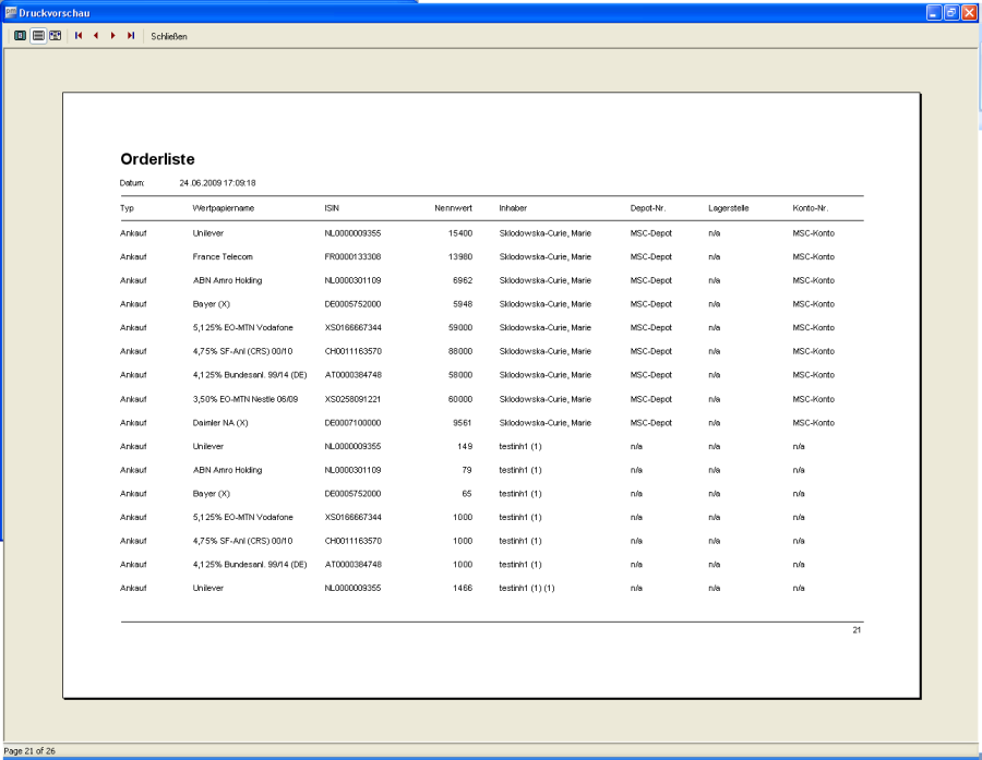 Über den Button "Vorschau" wechseln Sie in die Druckvorschau der Orderliste.
