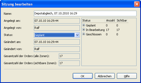 Im Dialogfenster "Sitzung bearbeiten" finden Sie folgende Informationen: