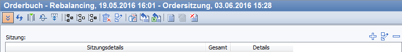 Im Fenstertitel des Orderbuchs wird die ausgewählte Ordersitzung angezeigt. Haben Sie mehrere Ordersitzungen ausgewählt, so werden die erste und die letzte ausgewählte Ordersitzung angezeigt: