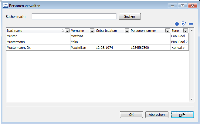 | Mit diesem Icon können Sie eine neue Person anlegen. Lesen Sie dazu den Abschnitt Neue Person anlegen. |