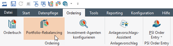 - Oder wählen Sie das Icon "Portfolio-Rebalancing" auf der Registerkarte "Ordering".