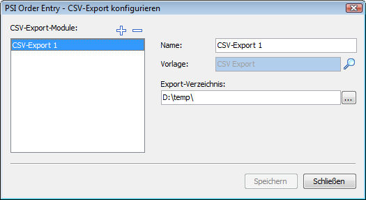 Es erscheint das Dialogfenster "PSI Order Entry – CSV-Export konfigurieren".