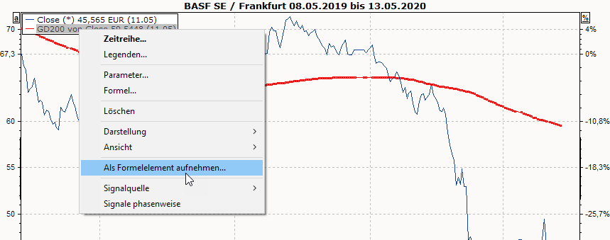 - Wählen Sie dazu im Kontextmenü der von Ihnen definierten Zeitreihe den Befehl ALS FORMELELEMENT AUFNEHMEN...