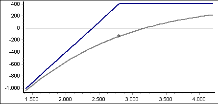 Der maximale Verlust ist nahezu unbegrenzt, denn der Verlust steigt proportional zum sinkenden Kurs des Basiswerts. Je tiefer der Kurs am Verfalltermin, desto höher der Verlust, der dann dem inneren Wert des Puts entspricht.