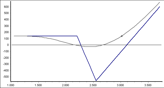 Der Ratio-Back-Spread besteht wie jeder Spread aus gekauften und verkauften Optionen desselben Typs. Bei Ratio-Back-Spreads mit Calls kaufen Sie die Calls mit dem höheren Basispreis, die billiger sind.