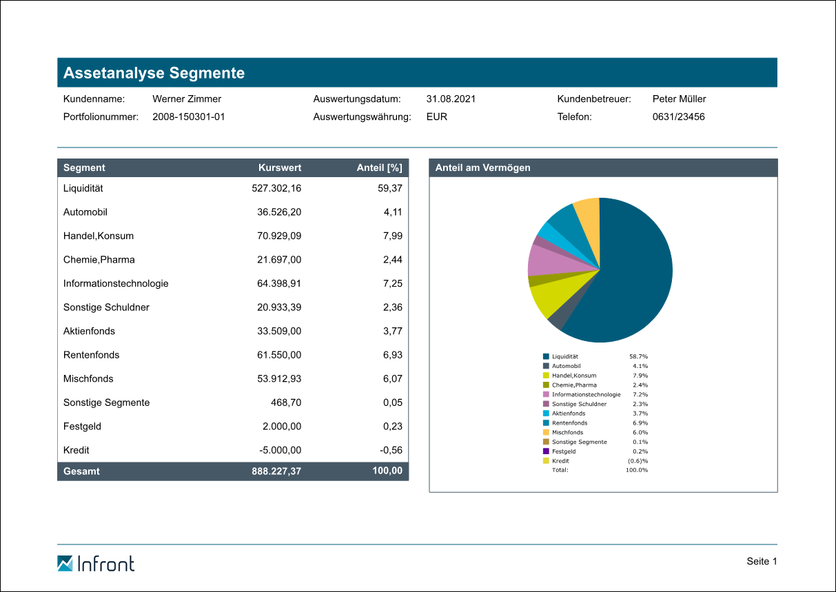 Die Segmente können im Infront Portfolio Manager mit dem lizenzierten Modul "Portfolio-Service Erweiterte Portfolio-Analyse" individuell angepasst werden.