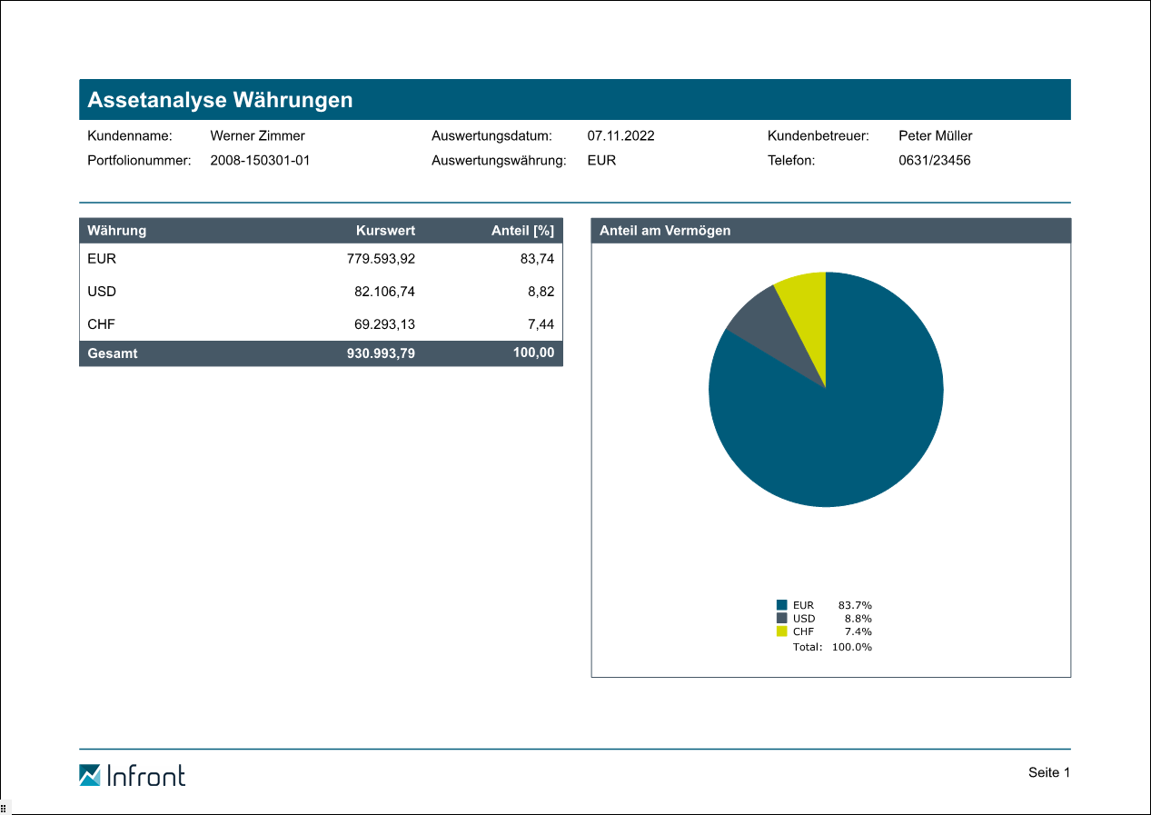 Die Währungsklassen können im Infront Portfolio Manager mit dem lizenzierten Modul "Portfolio-Service Erweiterte Portfolio-Analyse" individuell angepasst werden.