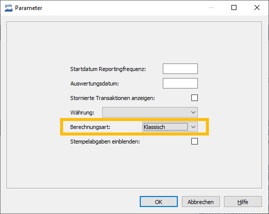 Um den Report auf die Berechnungsart "Klassisch" umzustellen, gehen Sie wie folgt vor:
