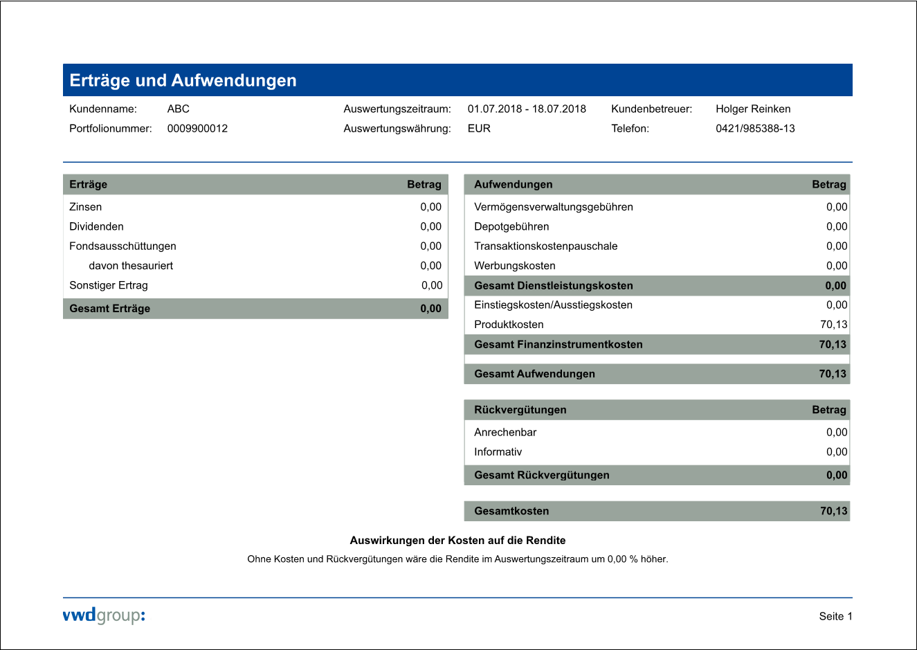 Auswirkungen der Kosten auf die Rendite | Unten im Report erfahren Sie, wie sich die Rendite aufgrund der im Report ermittelten Gesamtkosten prozentual verändert. |