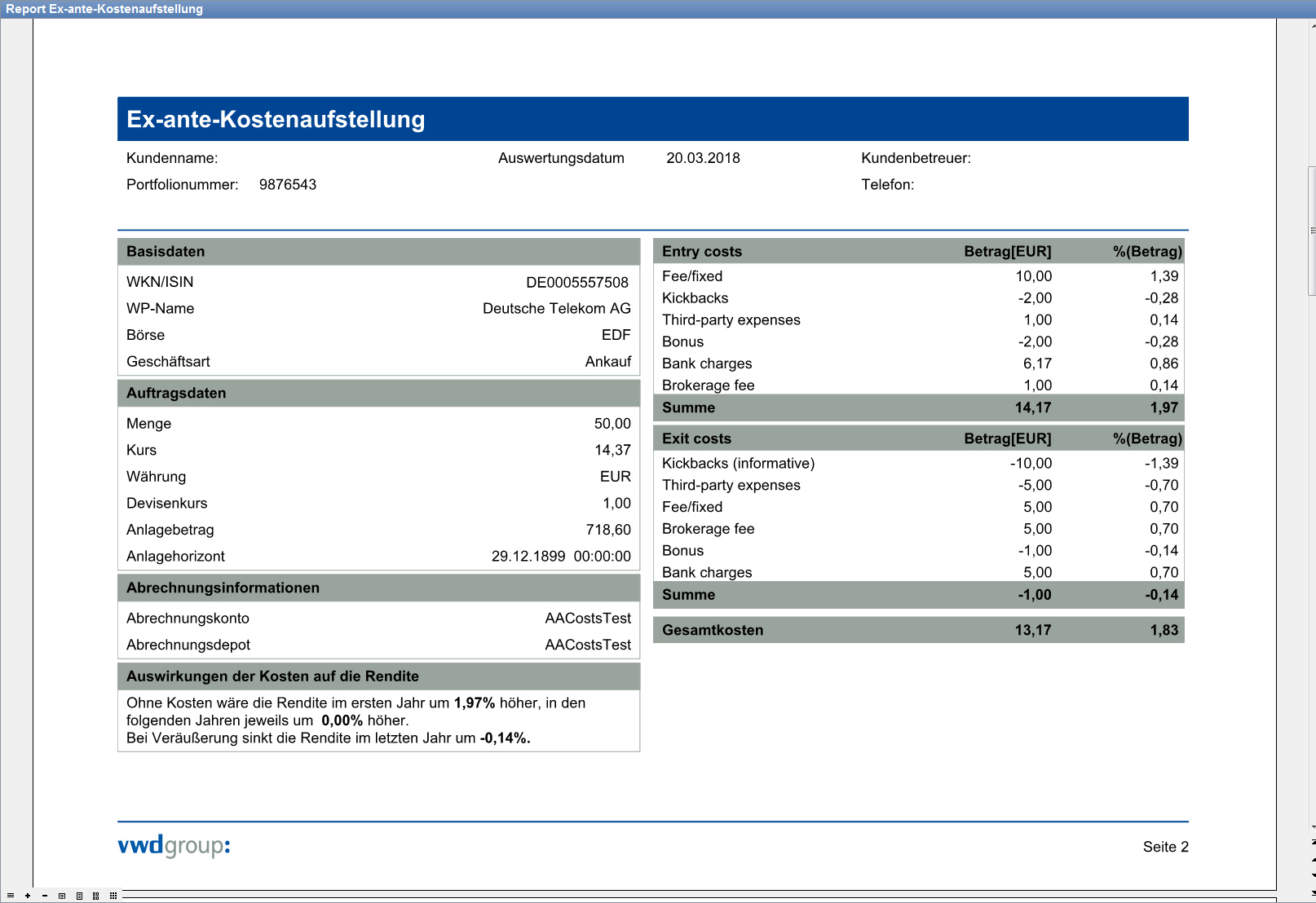 | Ex-ante-Kostenaufstellung | Der Titel des Reports. |