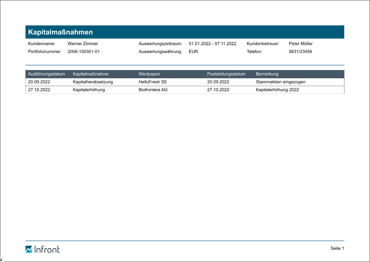 Im Einzelnen enthält der "Report Kapitalmaßnahmen" folgende Informationen:
