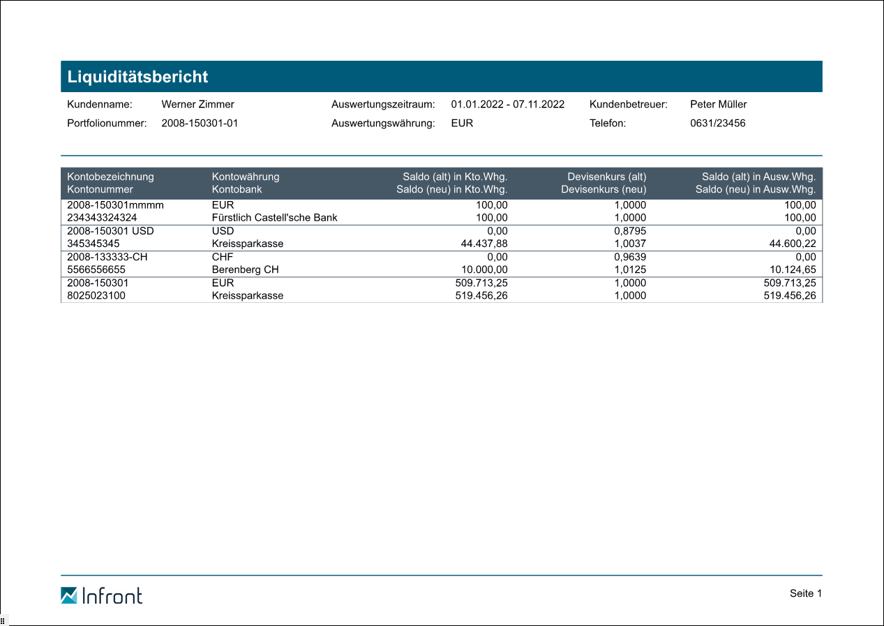 Im Einzelnen enthält der "Report Liquiditätsbericht" folgende Informationen: