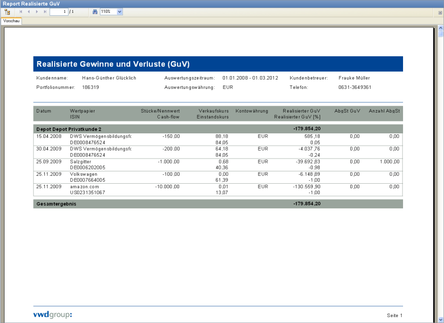 Die Daten entsprechen denen der tabellarischen Auswertung. Erläuterungen zu den Spalten und Parametern finden Sie daher im Kapitel Realisierte Gewinne.