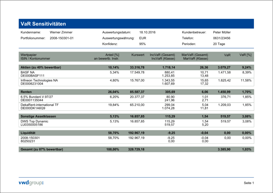 VaR | Der Value at Risk (Gesamt-VaR). |