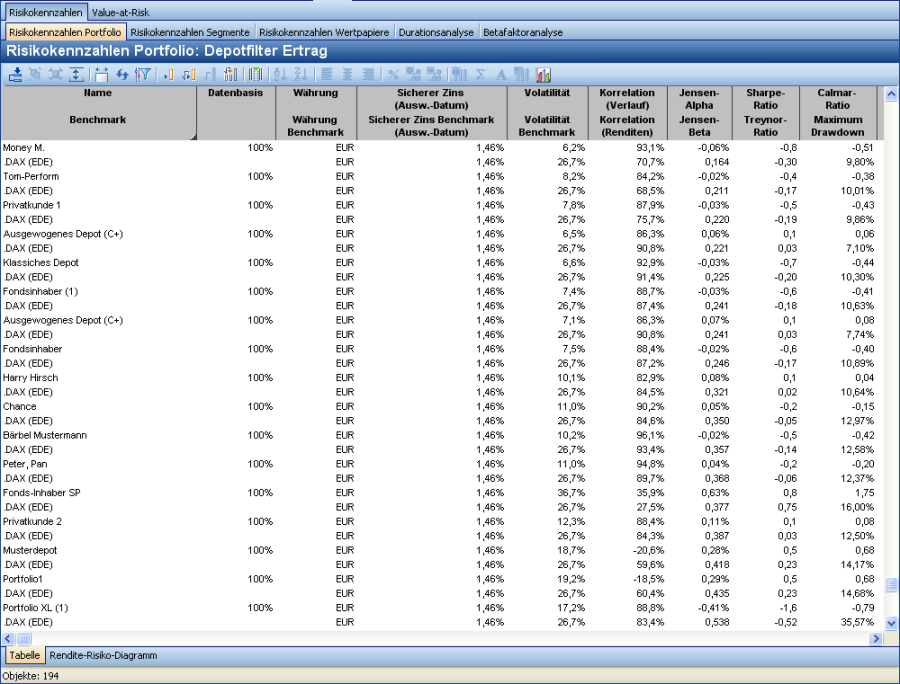 Risikokennzahlen Portfolio
