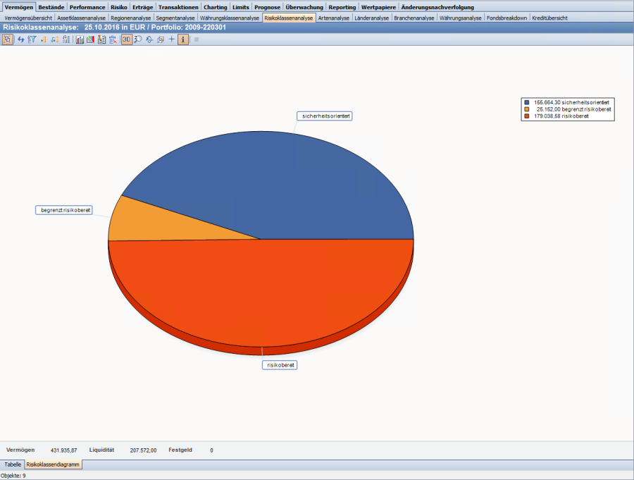 Die Risikoklassenanalyse öffnet sich als Tabelle. Wählen Sie am unteren Rand des Fensters im Arbeitsbereich die Registerkarte "Risikoklassendiagramm", um zur Darstellung als Diagramm zu wechseln.
