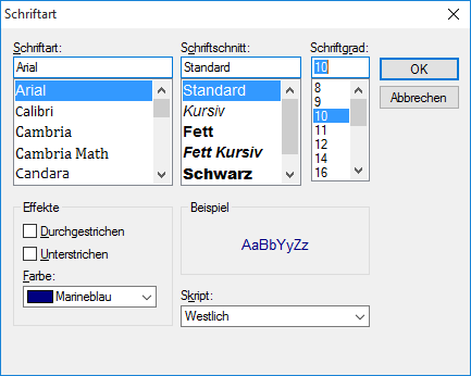 Wählen Sie die gewünschte Schriftart aus der Liste "Schriftart" aus.