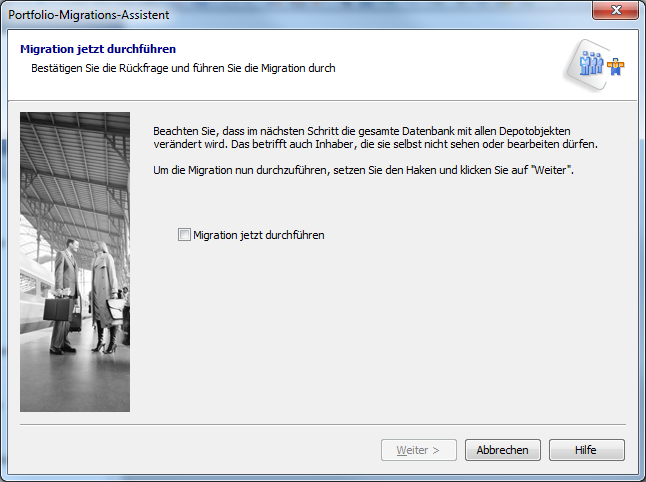 Bevor die Migration weitergeht, wird hier nochmal eine Sicherheitsabfrage eingefügt, da hier die Migration direkt während des Assistentenlaufs durchgeführt wird.