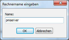 - Geben Sie im nun folgenden Dialogfenster "Rechnername eingeben" den gewünschten Rechnernamen ein. Der aktuelle Rechnername wird vorgeblendet. Prüfen Sie die Angabe und korrigieren Sie diese bei Bedarf.