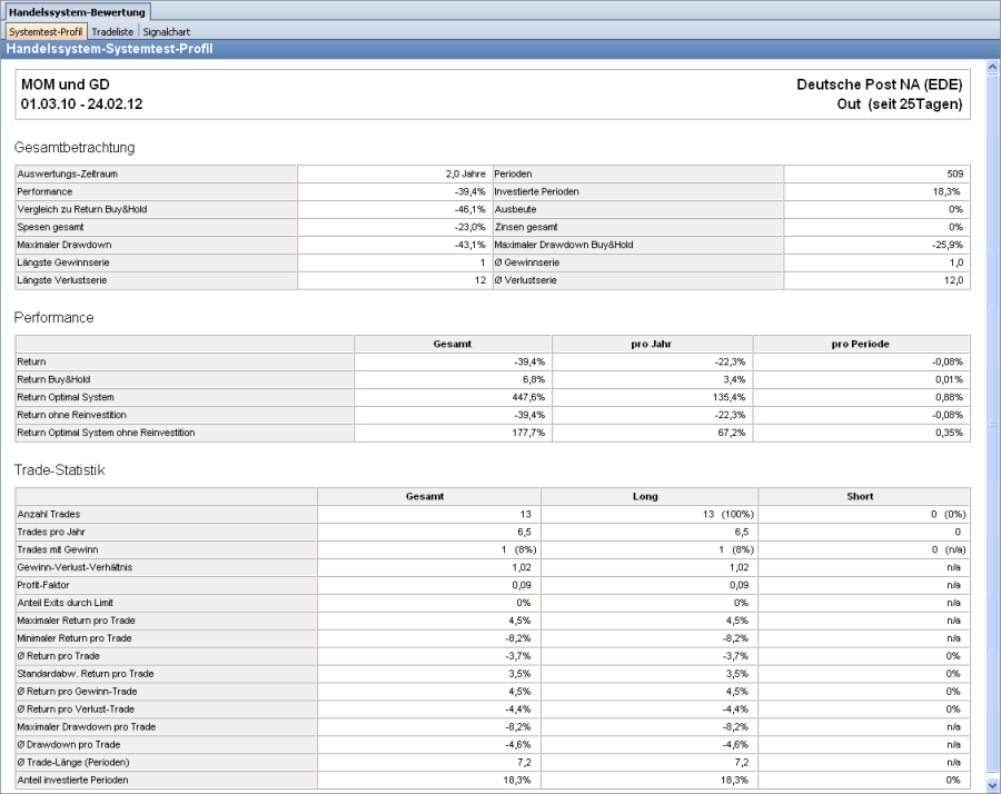Sie öffnen das Systemtest-Profil für ein Wertpapier aus dem Kontextmenü der Position in der gerade beschriebenen Systemtest-Tabelle.
