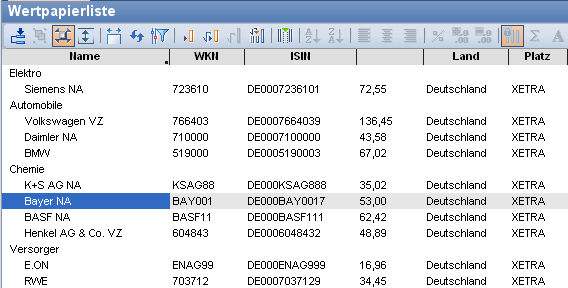 Klicken Sie auf eine Tabellenzelle, so wird die betreffende Zeile ebenfalls eingefärbt und somit markiert. Mit den Pfeil-Tasten auf Ihrer Tastatur können Sie so die Zeilen nacheinander markieren. Bei gleichzeitig gedrückter Taste <UMSCHALT> (<SHIFT>) markieren Sie mehrere Zeilen gleichzeitig.
