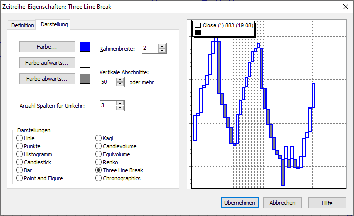 Einstellungen des Three-Line-Break-Charts