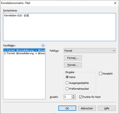 - Nehmen Sie im erscheinenden Dialogfenster "Korrelationsmatrix-Titel" die gewünschten Einstellungen vor und bestätigen Sie diese mit "OK".