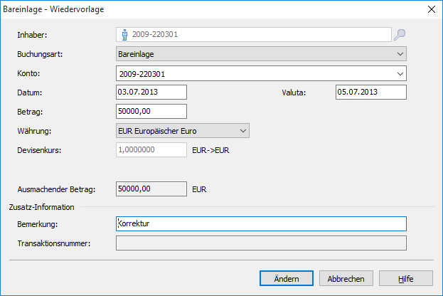 Wenn Sie die Aktion beenden möchten, ohne die Transaktion zu ändern, dann beenden Sie das Dialogfenster mit "Abbrechen" oder beantworten Sie die abschließende Abfrage mit "Nein".