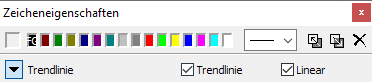Wählen Sie das Icon "Trendlinie" und zeichnen Sie die Linie bei gedrückter linker Maustaste in den Chart ein. Es öffnet sich das Dialogfenster "Zeicheneigenschaften".