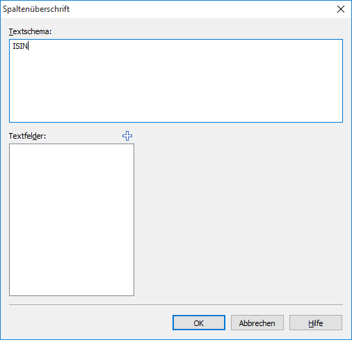 Bei der Definition von Überschriften haben Sie zwei Möglichkeiten: Sie können Text eingeben, also eine statische Bezeichnung wählen, oder Sie entscheiden sich für dynamische Überschriften. Dabei können Sie den Text mit Informationen ergänzen, die sich von Auswertung zu Auswertung verändern und deshalb mit statischem Text nicht erfasst werden können.