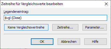 Parameter… | Hier stellen Sie die einzelnen Parameter für die Vergleichszeitreihe ein. Da es sich bei dem Vergleichswert in der Regel um einen einfachen Kursverlauf (Kassa oder Close) handelt, sind meist keine Einstellungen nötig. |