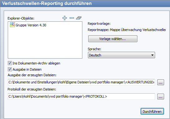 Starten Sie das Verlustschwellen-Reporting mit dem Button "Durchführen".