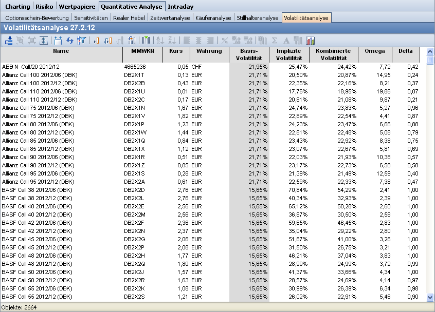 Die Volatilitätsanalyse stellt die verschiedenen Volatilitätszahlen zusammen.