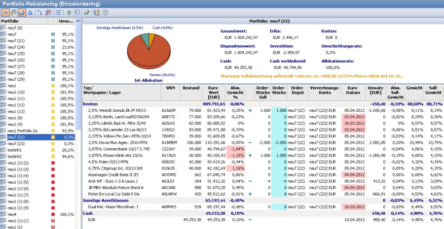 Das Diagramm (Tortendiagramm vom Diagrammtyp "Soll-Allokation") ist standardmäßig eingeblendet.
