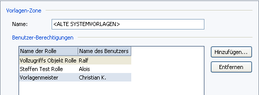 Benutzer-Berechtigungen | Entnehmen Sie dieser Tabelle die Benutzer-Berechtigungen dieser Vorlagen-Zone. Lesen Sie zu den Details die Beschreibung im vorhergehenden Abschnitt Objekt-Zonen bearbeiten. |