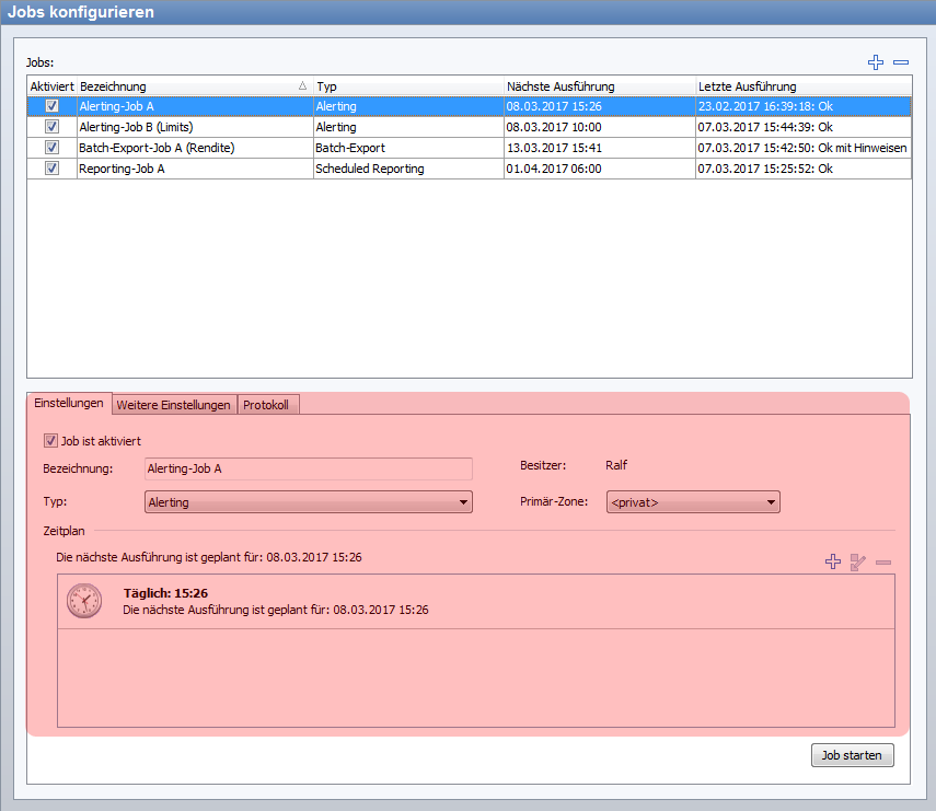 Worksheet "Jobs konfigurieren": Job-Detailansicht