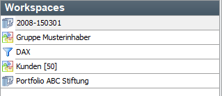 Zu den verschiedenen Objekten innerhalb Ihres Infront Portfolio Manager, z. B. Inhaber, Depots oder Wertpapieren, werden die sogenannten Workspaces (Arbeitsbereiche) aufgebaut.