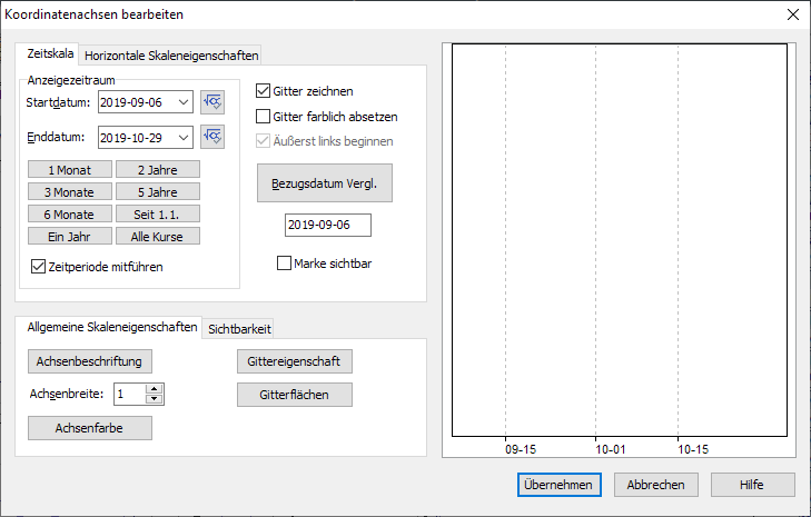 Sichtbarkeit | Legen Sie auf der kleinen Registerkarte "Sichtbarkeit" fest, welche Achsen eingeblendet werden sollen. Hier können Sie auch die rechte Achse als Standard festlegen. |
