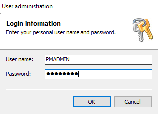 - In this login dialog, enter the previously assigned user name (in the example "Administrator 1") and password and confirm the entries with "OK".