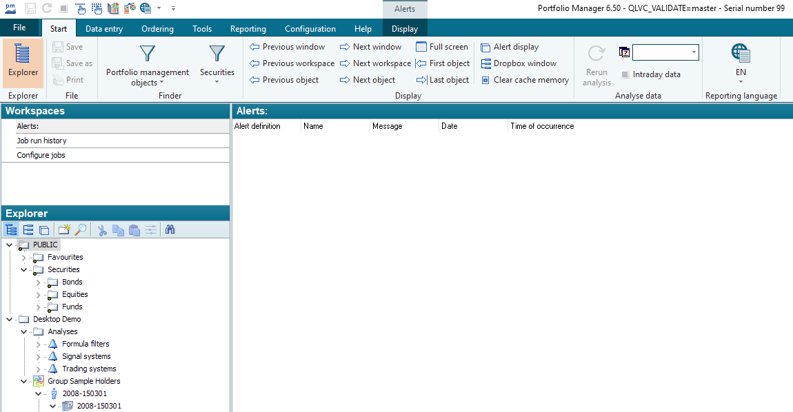 You can start the display of alerts via the ALERT DISPLAY command on the "Start" tab.
