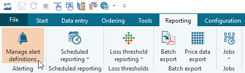 - Select the "Edit alert definitions" icon on the "Reporting" tab.