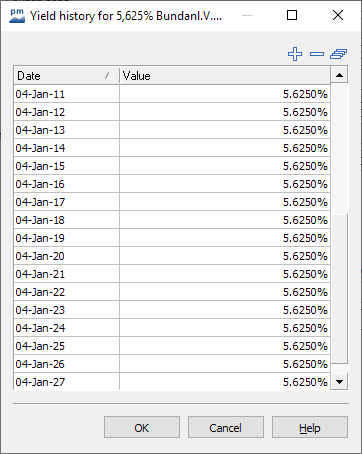 If the checkbox is activated, the entries in the history are interpreted as single payment dates. This makes it possible to map special cases such as long first coupons or defaulted payments.