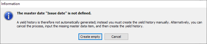 No histories can be created for zero bonds and bonds of type "n/a", the icon is therefore deactivated in these cases. If you click on the "Edit interest history" icon and no interest history exists yet, the program offers to automatically generate an interest history from the master data if the following master data exists: