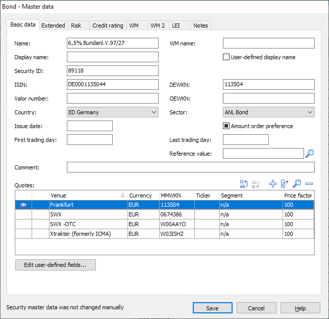 If the bond is a pool factor bond, activate the "Bond has pool factor" checkbox on the "Advanced" tab in the "Master data" dialog box.