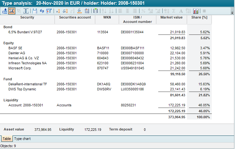 If you would like to find out which security types the securities accounts are divided into, open the "Type analysis" report.