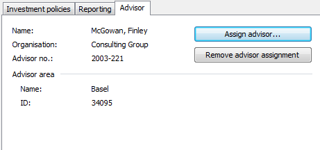 - In the "Manage portfolio profiles" dialog box, switch to the "Supervisor" mini-tab. There you will see the data of the currently assigned supervisor.