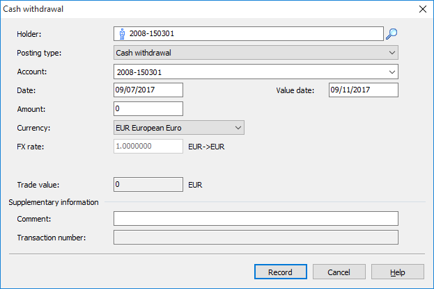 You can of course also withdraw money from accounts. To enter a cash withdrawal, proceed as follows: