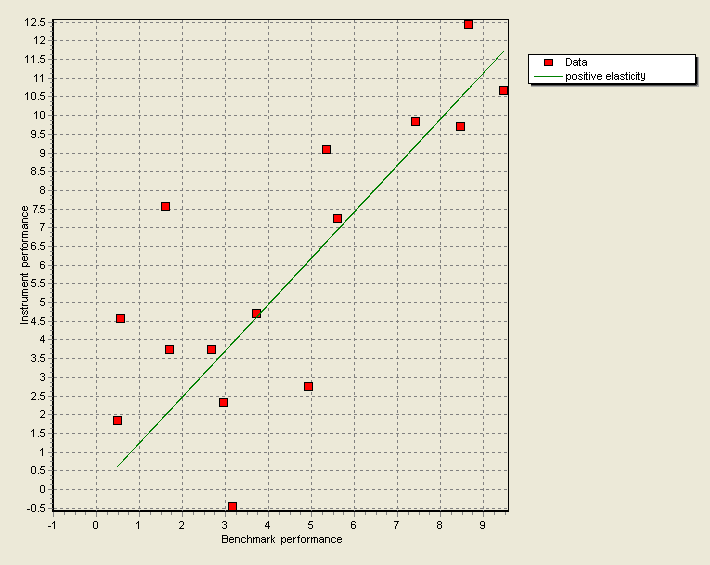 For the positive elasticity, i.e. the dependence of security performance in a rising market phase on the underlying security performance, the model is