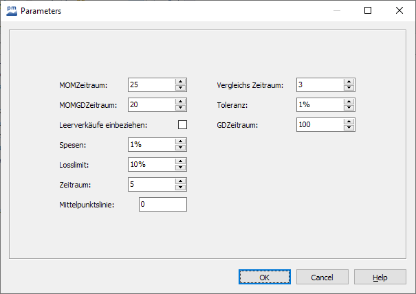 The aim of the trading system is to combine the two indicators GD and momentum. The aim is to eliminate a typical weakness of momentum: the frequently delayed generation of signals when the 100 line is used as a signal generator. The trading system should be optimized accordingly to find the optimal settings for the GD and momentum.